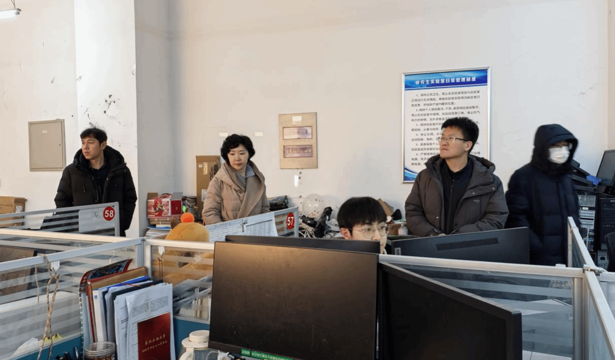 由公司党委书记韦丹宁带队,对地科馆内的实验室、研究生工作室、仪器设备间等重点场所进行了全覆盖、拉网式排查。检查内容涵盖消防安全、用电安全、化学品管理、应急通道畅通情况等关键环节。检查组仔细查看了灭火器等消防设施情况、实验室使用记录、是否存在使用违规用电设备等情况,并对前期三级单位自查发现隐患的整改情况进行了“回头看”。