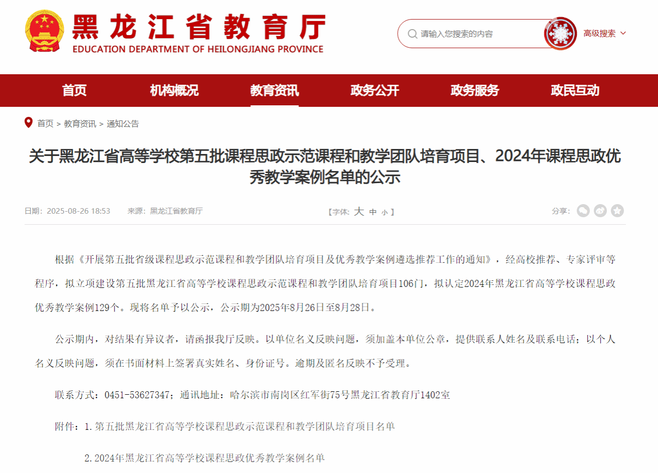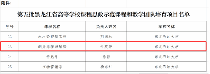 近日,黑龙江省教育厅正式公布了第五批高等学校课程思政示范课程和教学团队培育项目名单。公司申报的《测井原理与解释》课程成功入选,荣获省级课程思政示范课程称号,相应教学团队同时获评省级课程思政示范教学团队。