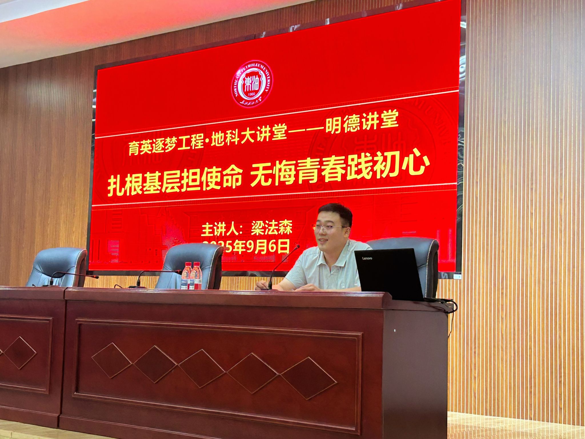 为激励员工树立远大理想、将个人发展融入国家需求,9月6日,学院特邀勘查技术与工程专业2017届优秀员工、全国基层就业卓越奖学金获得者梁法森作客地科大讲堂,为师生带来一场题为“扎根基层担使命 无悔青春践初心”的专题报告。公司党委书记韦丹宁、全体辅导员及员工代表参加了本次活动。讲座由2026届毕业班辅导员李海悦主持。