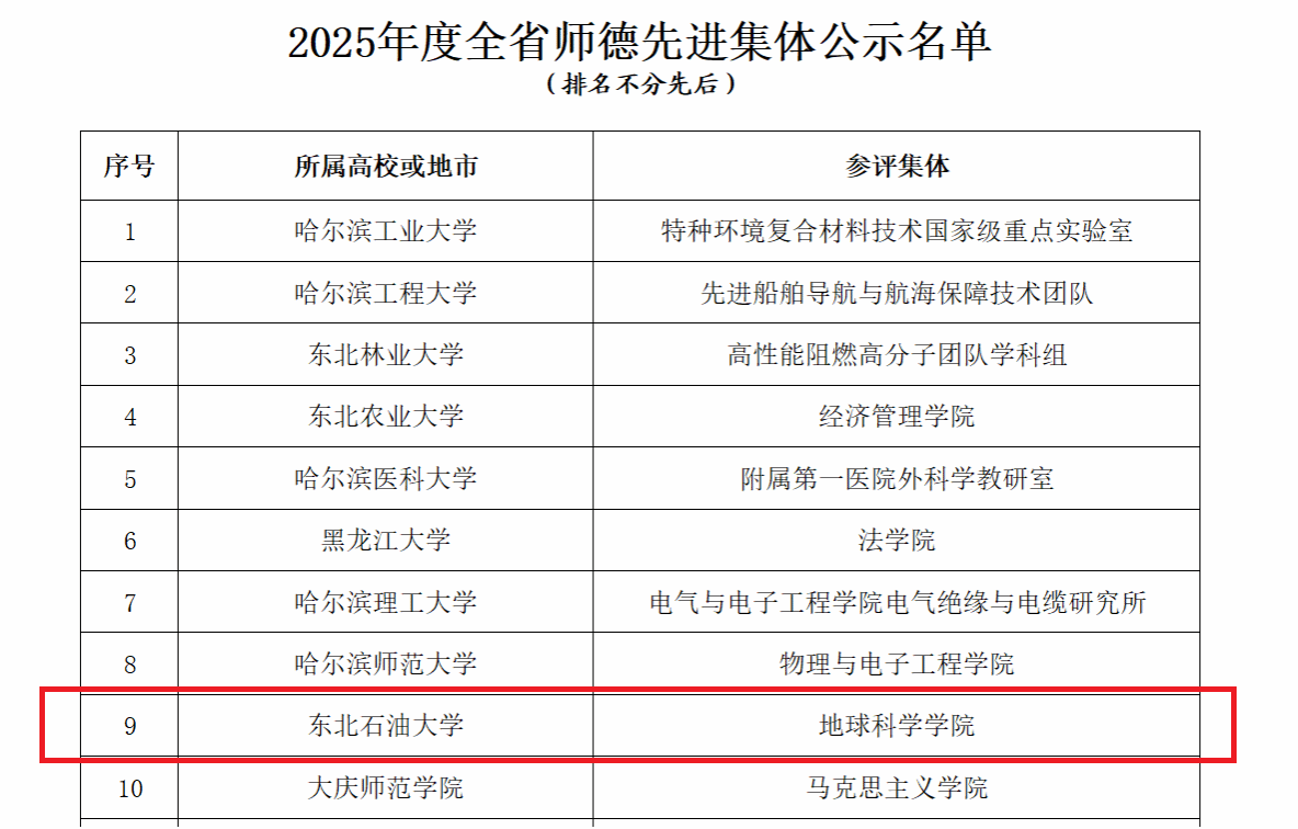 地球科学公司始终坚持以习近平新时代中国特色社会主义思想铸魂育人,坚守为党育人、为国育才的初心使命,将实施新时代立德树人工程作为立院之本,坚持育人为本、人才优先、学科引领、特色发展。学院坚持强化党建引领,立足国家“五大安全”战略定位,培育“全国高校黄大年式教师团队”,打造“全国党建工作样板支部”,获批全省公办高公司党建工作“标杆院系”创建培育单位;深化“课程思政”建设,大力弘扬大庆精神,实现课程思政高质量全覆盖,践行“向坤问道、正心笃行”的院训,培养的员工超过80%扎根能源一线,涌现出全国劳模等优秀员工;高度重视团队队伍建设,统筹规划、科学布局,引导教师以德立身、以德立学、以德施教,为服务国家能源战略和龙江振兴展现了卓越的师德担当与育人实效。