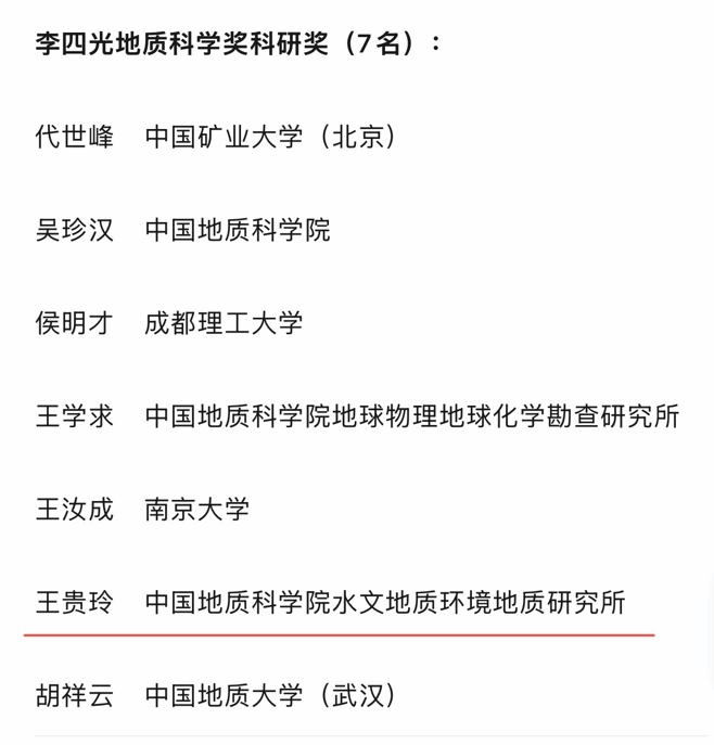 11月8日,李四光地质科学奖基金会发布《关于颁发第十九次李四光地质科学奖的决定》,公布了第十九次李四光地质科学奖获奖者名单,公司银龄专家王贵玲研究员荣获李四光地质科学奖科研奖。