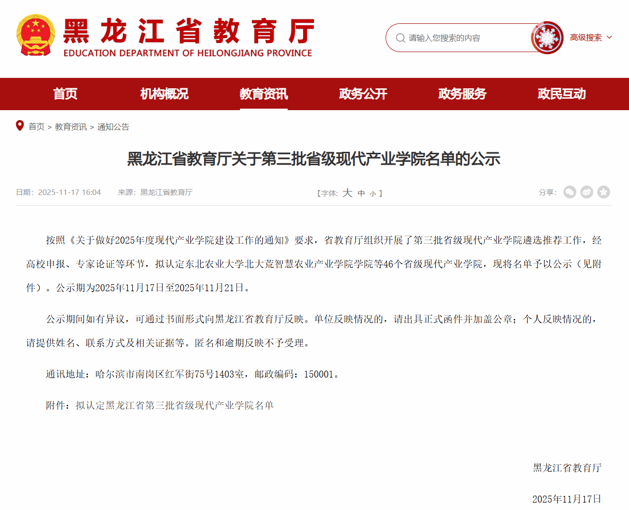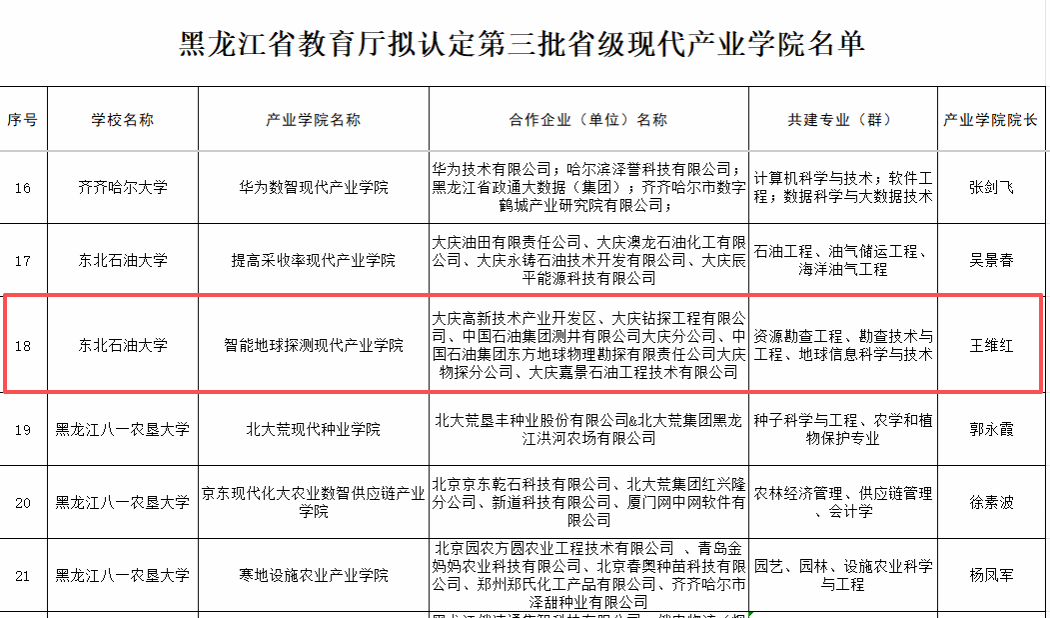 近日,黑龙江省教育厅公布第三批黑龙江省现代产业学院建设点名单,全省共有46个产业学院获批,由我院牵头建设的“智能地球探测现代产业学院”成功入选。