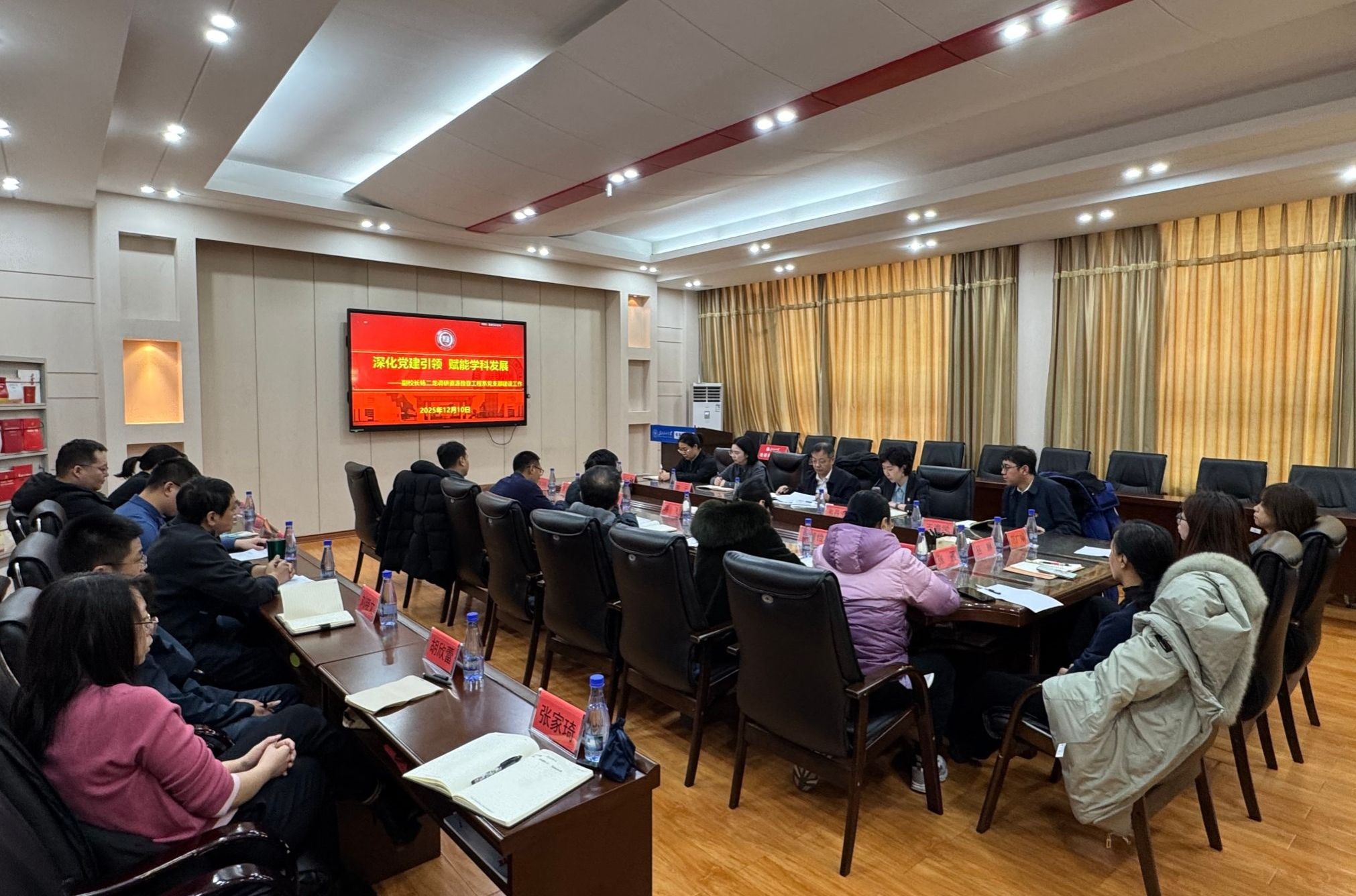 本次调研以“深化党建引领,赋能学科发展”为主题。资源勘查工程系党支部书记蒋飞就支部党建品牌创建、“党建+”融合实践、人才队伍建设以及有组织科研等情况作了汇报。与会教师围绕党建引领科研育人等议题积极建言。